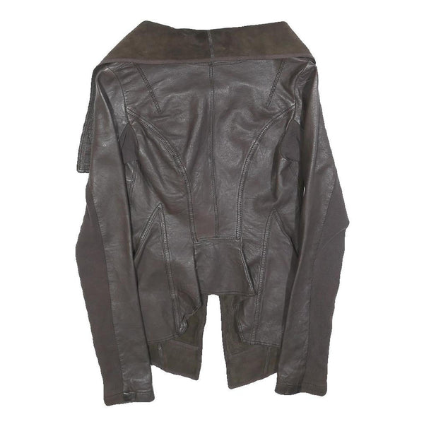 All saints womens brown leather leather jacket uk 6 plain classic slim fit