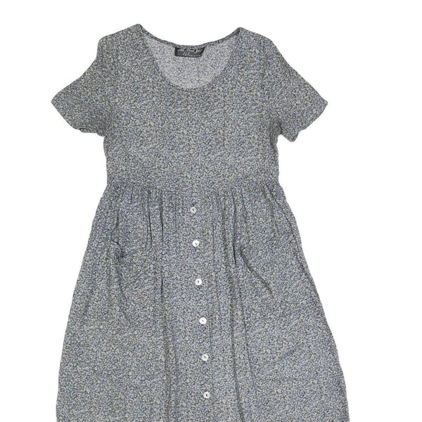 ALL THAT JAZZ Womens Grey Floral Day Dress Cotton Blend Short Sleeve Midi M