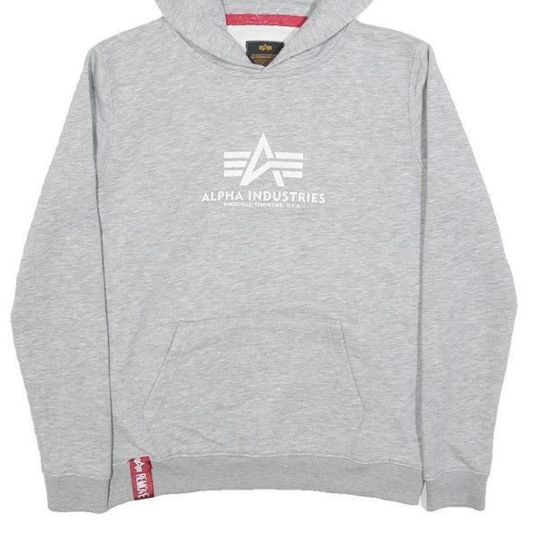 ALPHA INDUSTRIES Mens Grey Hoodie S Cotton Blend Pullover Casual Sweatshirt
