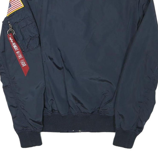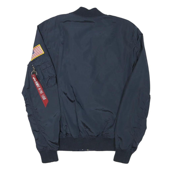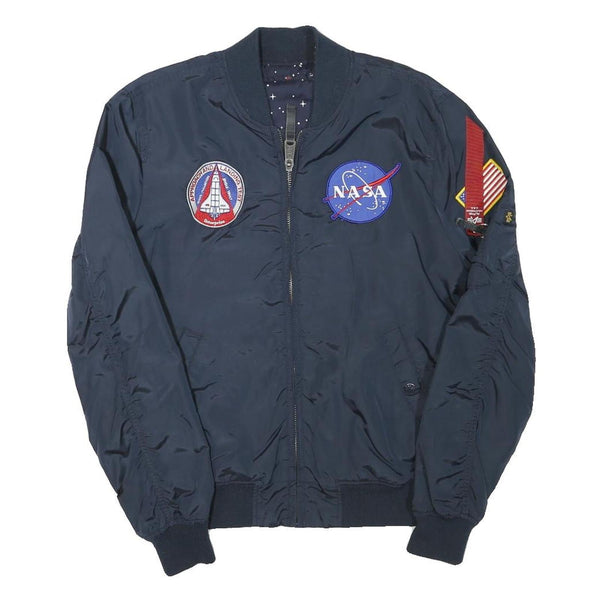 ALPHA INDUSTRIES Mens Navy Blue Bomber S Polyester Blend Plain NASA Space Flight