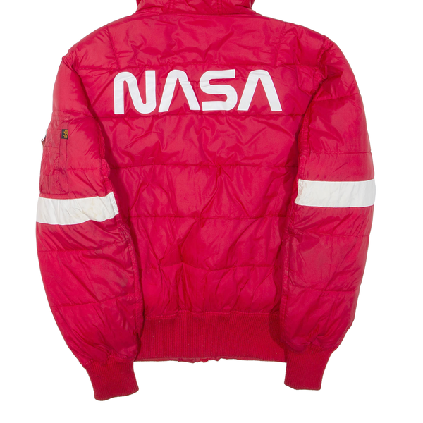ALPHA INDUSTRIES Mens Puffer Jacket Red Nylon Hooded L