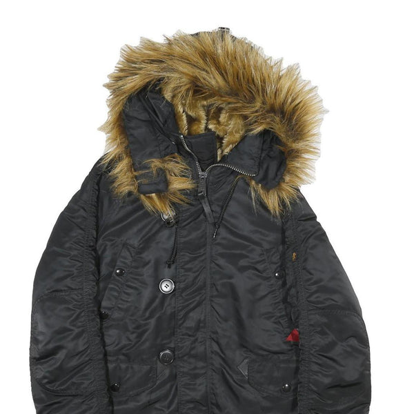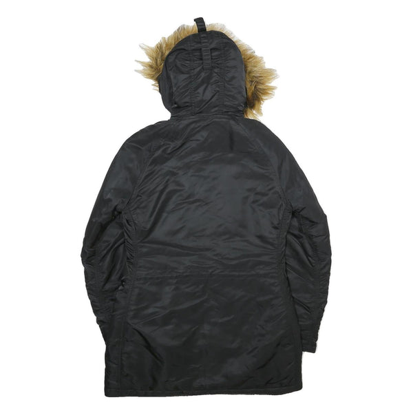 ALPHA INDUSTRIES Womens Black Nylon Flight Jacket XS Faux Fur Hood Zip
