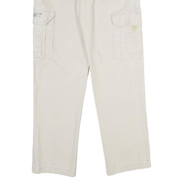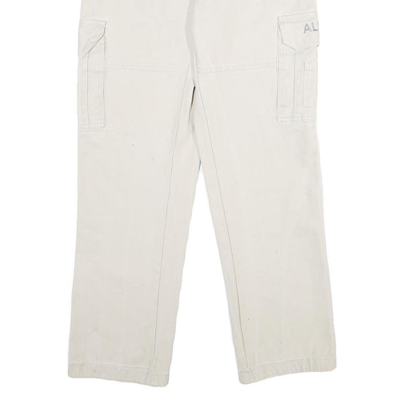 ALUART Mens Cotton White Regular Cargo Trousers W32 L32 Casual Functional Zip