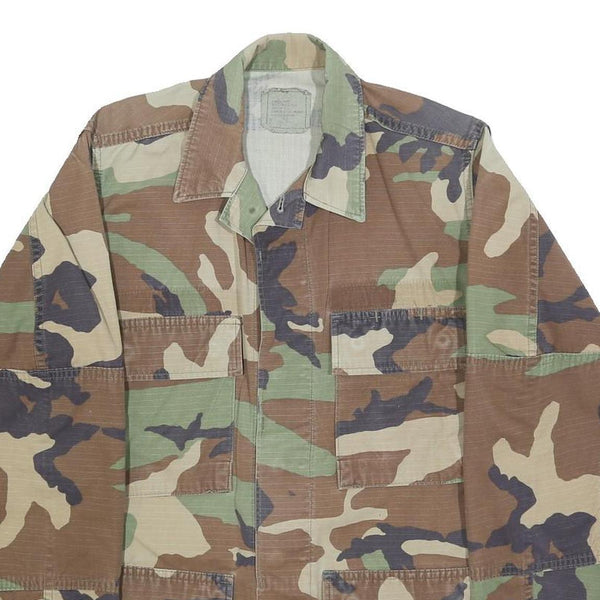 AMERICAN APPAREL Mens Green & Brown Camouflage Military Jacket XS Cotton Blend