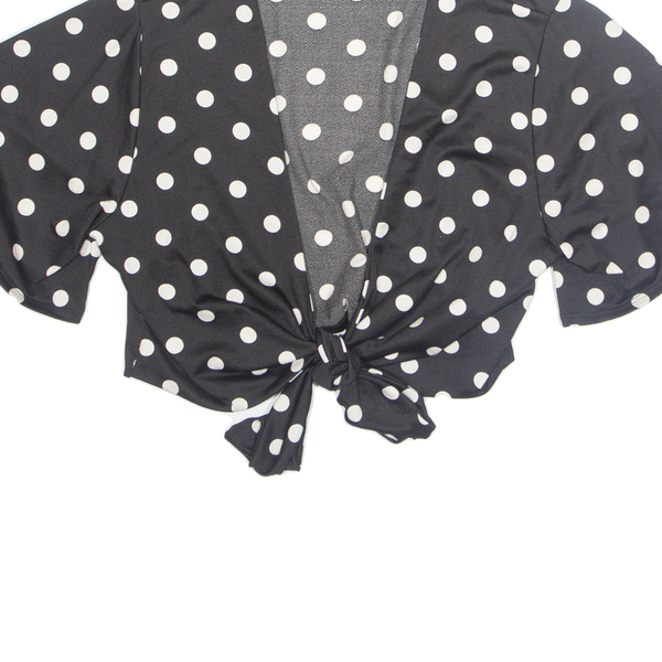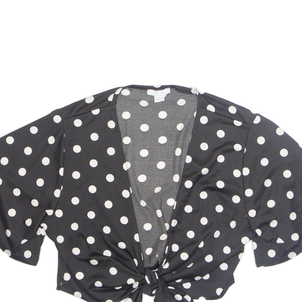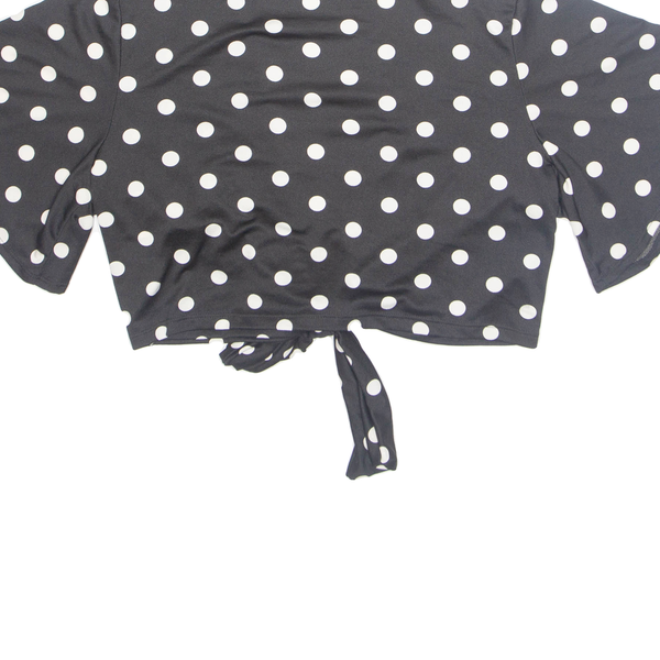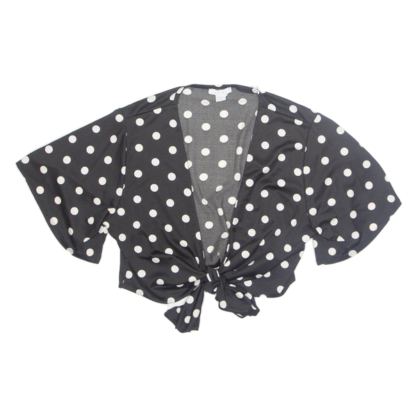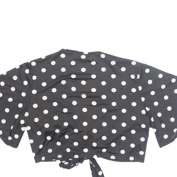 AMISU Cropped Womens Wrap Top Black V-Neck Polka Dot XL