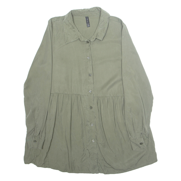 AMISU Womens Smock Shirt Green Collared Long Sleeve S