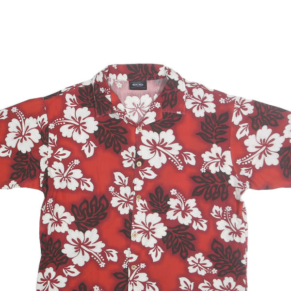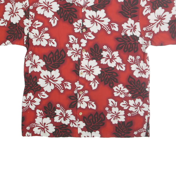 ANCHOR BLUE Mens Red & White Floral Hawaiian Shirt XL Cotton Summer Button