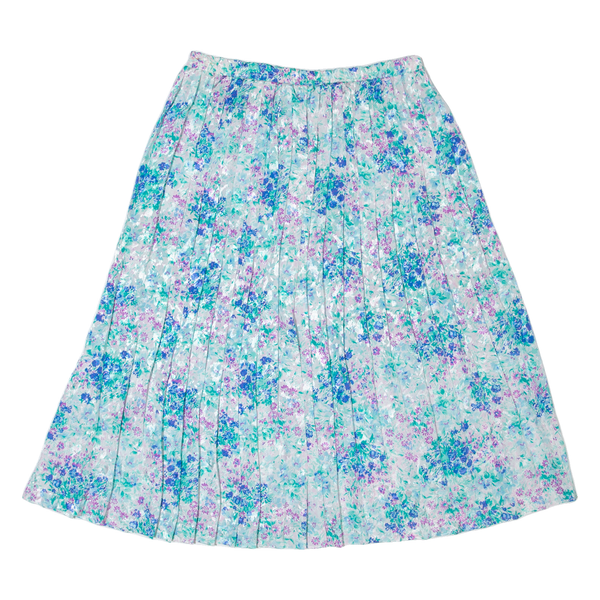 ANDREA GAYLE Womens Pleated Skirt Blue Midi 90s Floral M