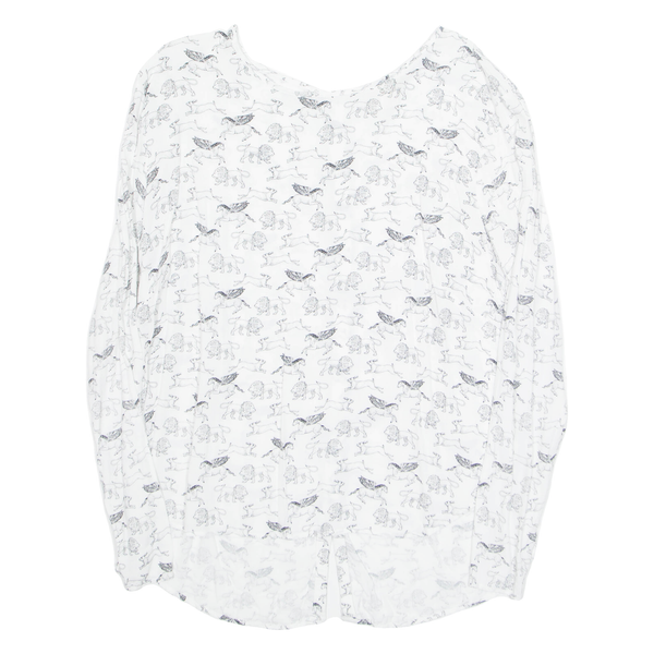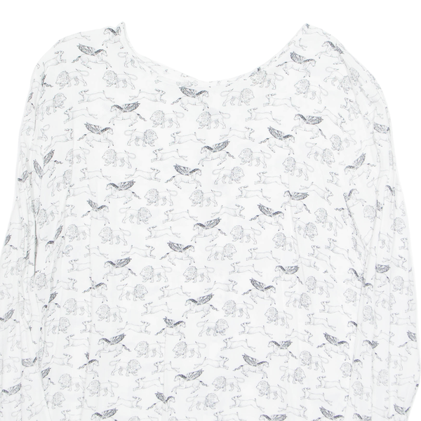Animals Womens Printed Top White Long Sleeve Crazy Pattern L
