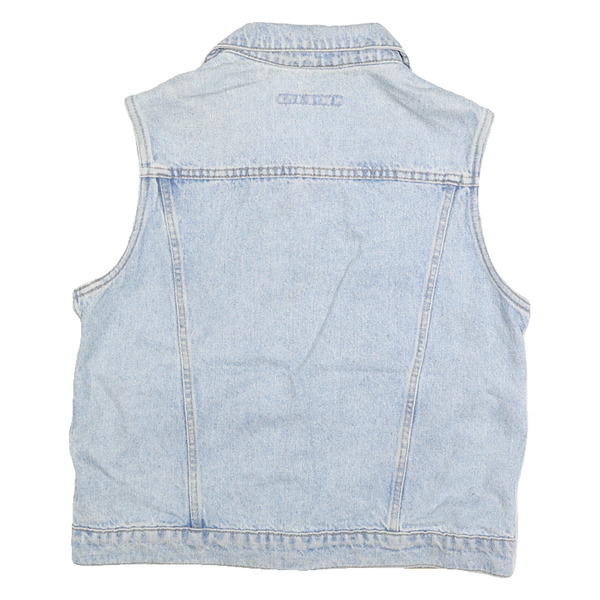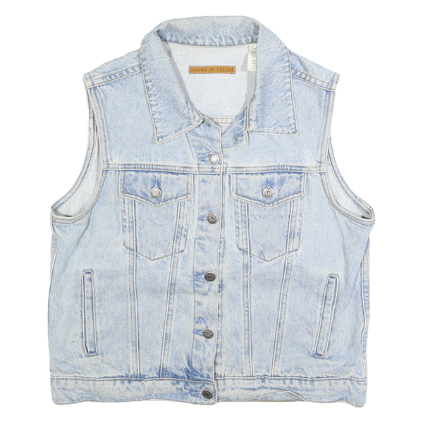 ANNE KLEIN Womens Light Blue Denim Sleeveless Jacket M Cotton Button Front