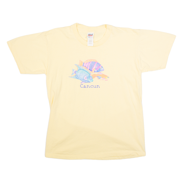 ANVIL Cancun Mens T-Shirt Yellow 90s Crew Neck L
