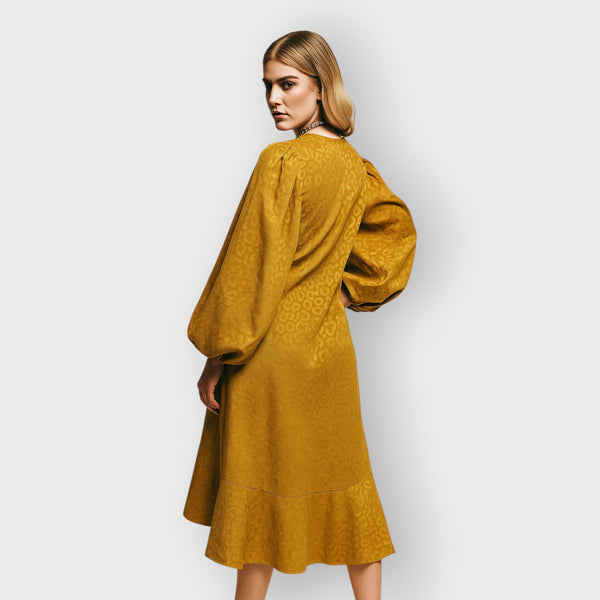 Plus size gold leopard print jacquard midi dress - aphrodite - up to uk 24/us 20