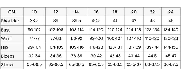 Note: Sizes UK 12-18 are in stock for your convenience; sizes 10, 20, 21, 22, 23, and 24 are made to order.