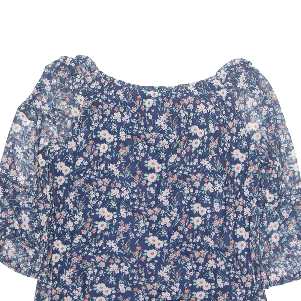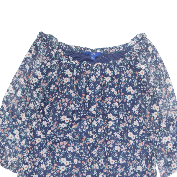 APT. 9 Womens Printed Blouse Blue Long Sleeve Floral M