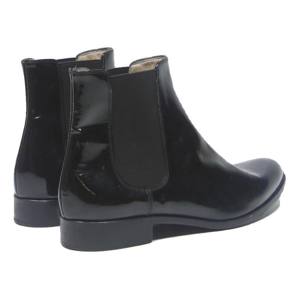 Made from high-quality leather, these boots provide durability and comfort. The ankle-high length is perfect for pairing with a variety of outfits, from casual to more formal looks. Their glossy finish adds a touch of sophistication, making them versatile for multiple occasions.