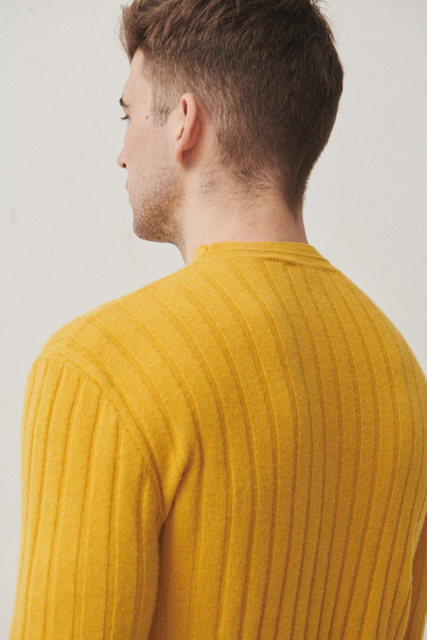 Hello there, ARCHIBALD! Our long-sleeved second-skin ribbed sweater, perfect for all-year-round weather.Light-weight yet warm, ARCHIBALD is an easy, transitional piece that can be worn both inside and outside. Cozy and simple, ARCHIBALD also has our signature ribbed neck and cuff trim details. ARCHIBALD is composed of 100% recycled fibers, and is GRS certified.Both the fibers and the manufacturing are made in ITALY to lower our carbon footprint.Unisex.