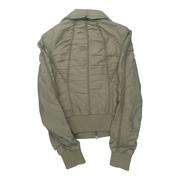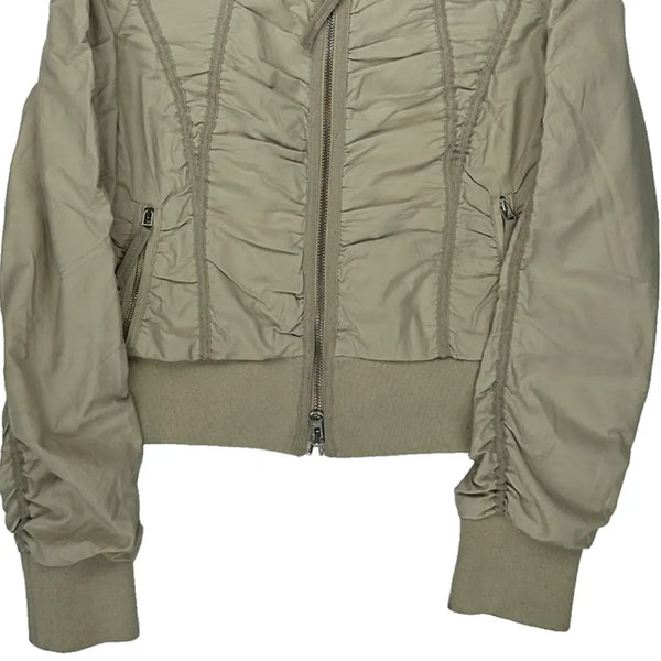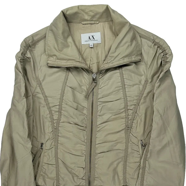 Light Beige Bomber Jacket With Ruched Details And Zipper Closure.