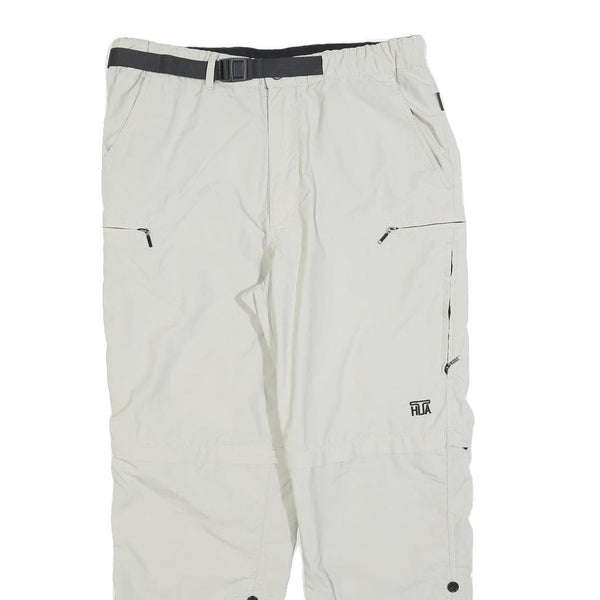 These ARTIME womens trousers come in a clean white colour crafted from lightweight polyester for a smooth, comfortable feel. The flat front features a zip closure and an integrated adjustable black belt for a secure fit. Multiple zipped pockets on the front and back offer practical storage, while the overall fit is regular with straight legs.