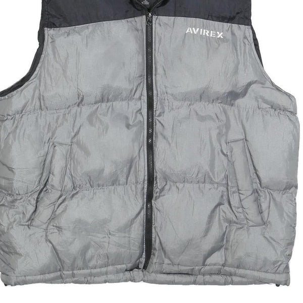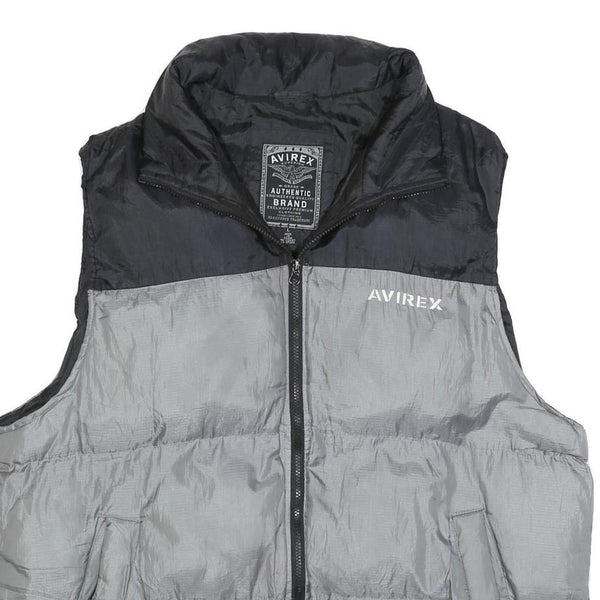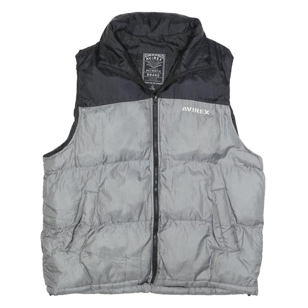AVIREX Mens Black & Grey Puffer Jacket L Polyester Zip Outdoor Casual Vest