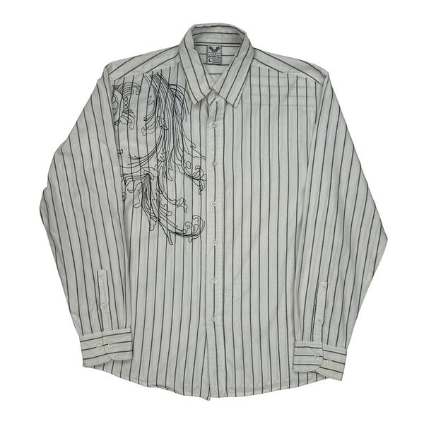 White Shirt With Black Vertical Stripes And Embroidered Design
