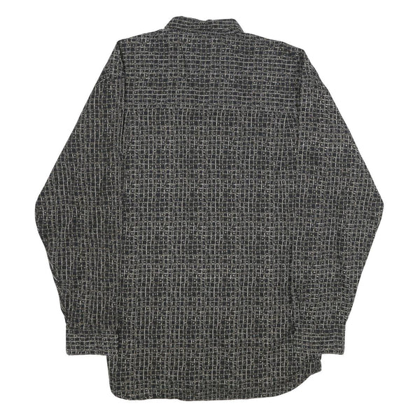 BACHRACH Mens Black Patterned Cotton Blend Shirt L Button Collar Long Sleeve
