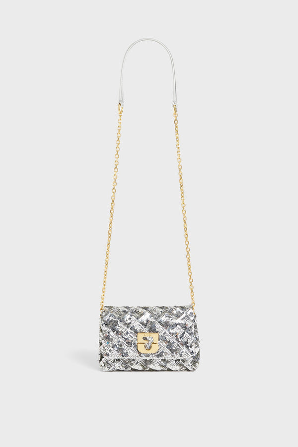 THE MINI FANNY IS A SMALL JEWEL OF SUBTLETY IN THE COLLECTION. ITS IDEAL FORMAT DAY AND NIGHT AND ITS SHOULDER STRAP BETWEEN LEATHER AND CHAIN, OFFER A COMFORTABLE WORN, BOTH CHIC AND PRACTICAL. BUT IT IS IN METAL ON THE CLASP OF ITS PADDING SET WITH S
