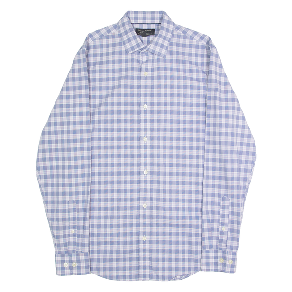 BANANA REPUBLIC Non-iron Slim Fit Mens Shirt Blue Check Long Sleeve S