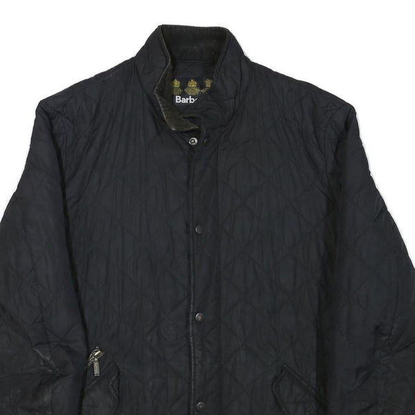 Barbour mens black quilted jacket l polyester blend button closure diamond