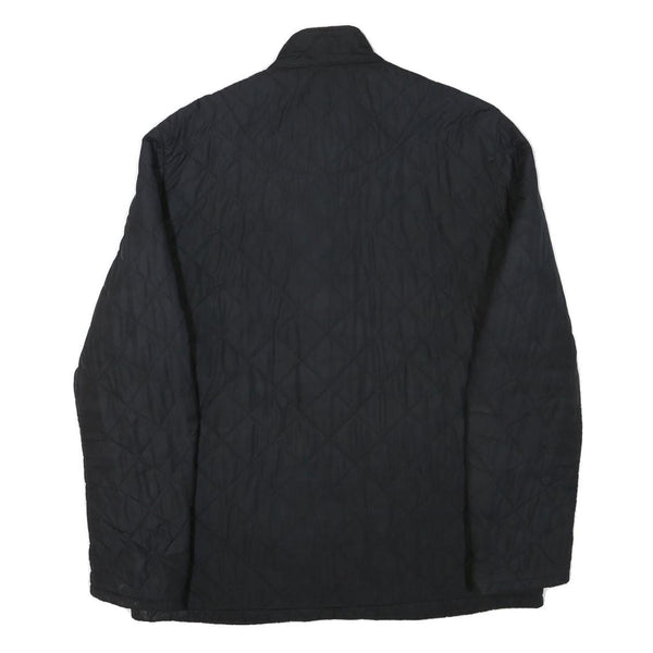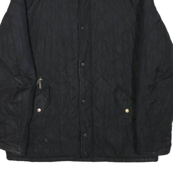 BARBOUR Mens Black Quilted Jacket L Polyester Blend Button Closure Diamond