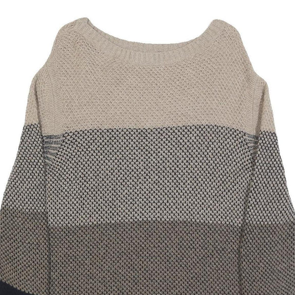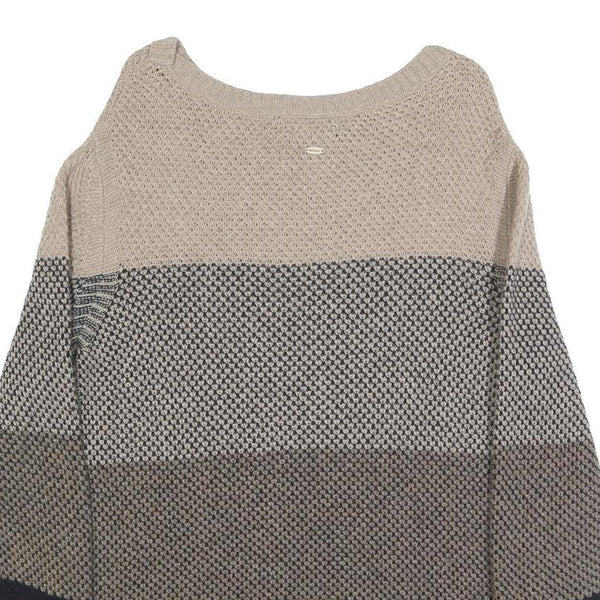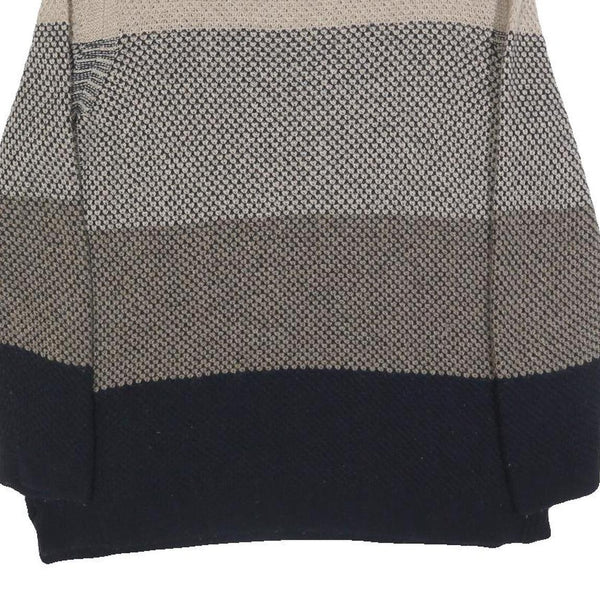 BARBOUR Womens Beige & Navy Patterned Jumper Round Neck Basic Knit UK 10 Wool