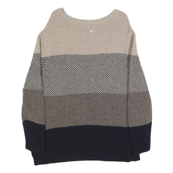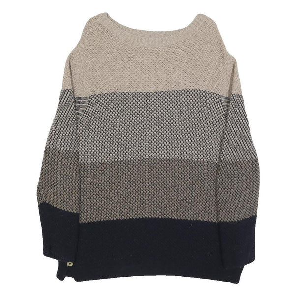Barbour womens beige & navy patterned jumper round neck basic knit uk 10 wool