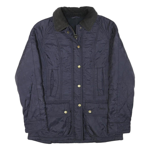 BARBOUR Womens Navy Quilted Jacket UK 10 Polyester Blend Zip Classic Outerwear