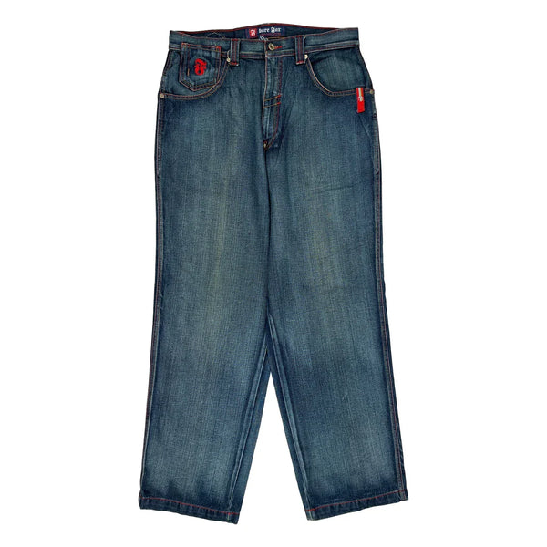 Bare Fox Jeans With Red Contrast Stitching And Embroidered Back Pockets.