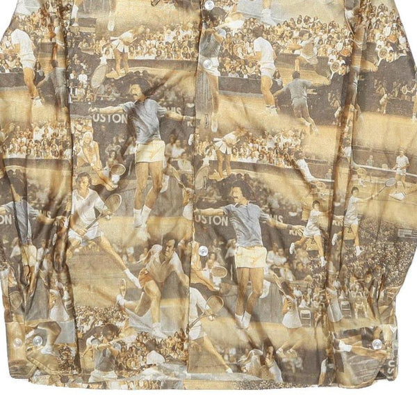 BARRISTER Mens Brown Printed Polyester Blend Shirt M Retro Tennis Design