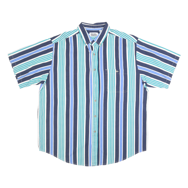 BASIC EDITIONS Mens Blue & Green Striped Button-Down Collar Shirt L Cotton Short