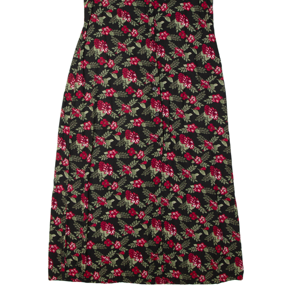 BASIC EDITIONS Tea Womens Day Dress Black 90s Floral Sleeveless Long M