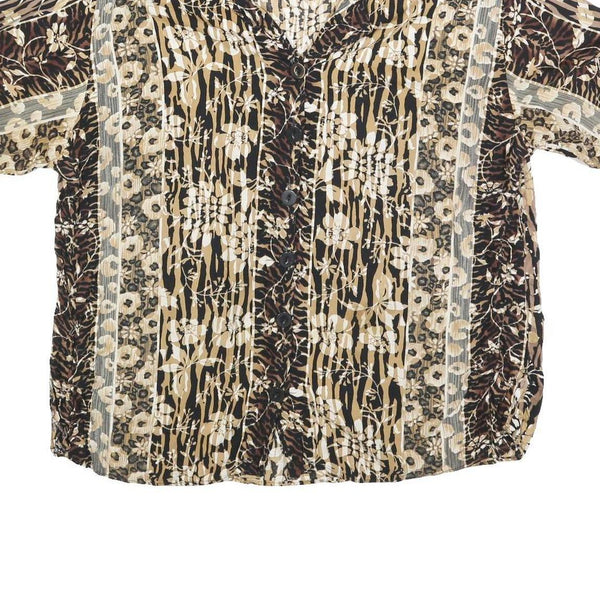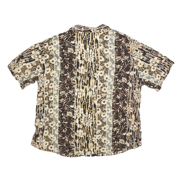 Home BASIC EDITIONS Womens Beige & Brown Printed Shirt Short Sleeve Collared XL