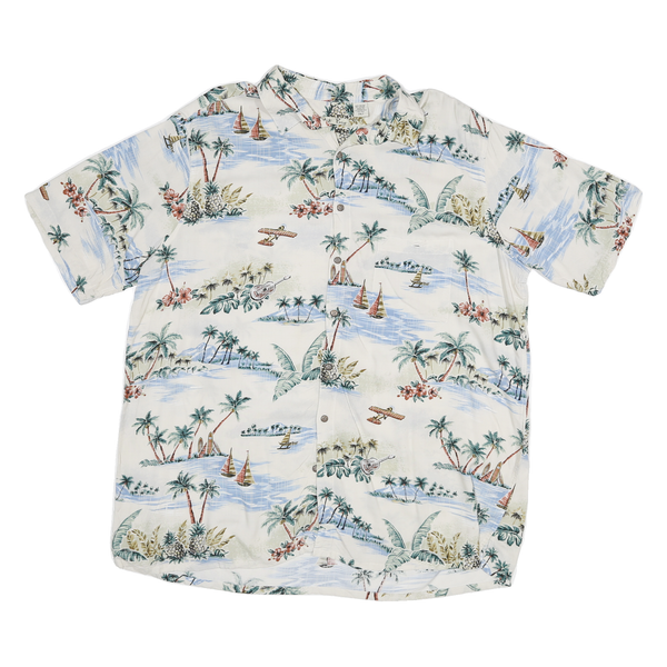 Batak bay mens white hawaiian rayon shirt 2xl summer vacation print relaxed fit