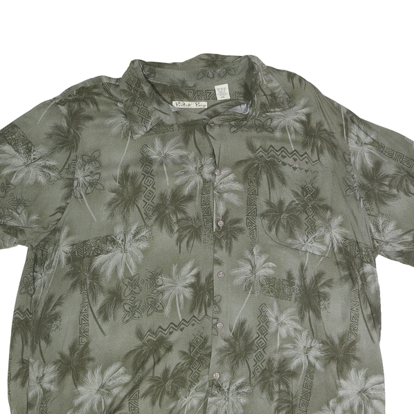 BATICK BAY Mens Green Rayon Shirt 2XL Tropical Palm Print Summer Casual