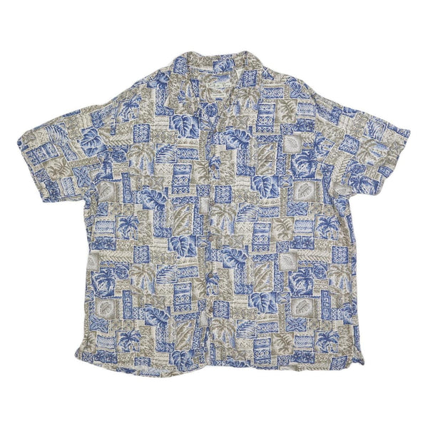 BATIK BAY Mens Blue & Beige Rayon Shirt 2XL Hawaiian Style Tropical Print Summer