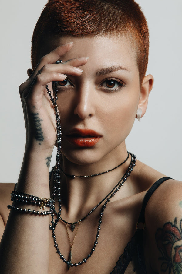 This Beaded Pearl Necklace is a beautiful and unique piece of jewelry. It is handcrafted from blue fresh water pearls, 14k gold vermeil, and faceted black spinel gemstones. This necklace is the perfect way to add a touch of elegance to any outfit.