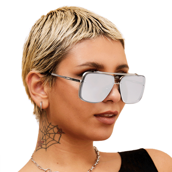 Bella -Tangle Free- Chrome Silver Oversized Squared Aviators
