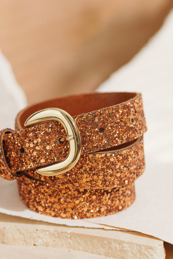 Add a touch of sparkle to your outfits by pulling in your dresses and cardigan with this glittery belt.