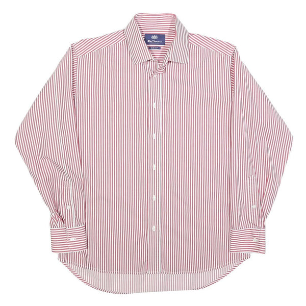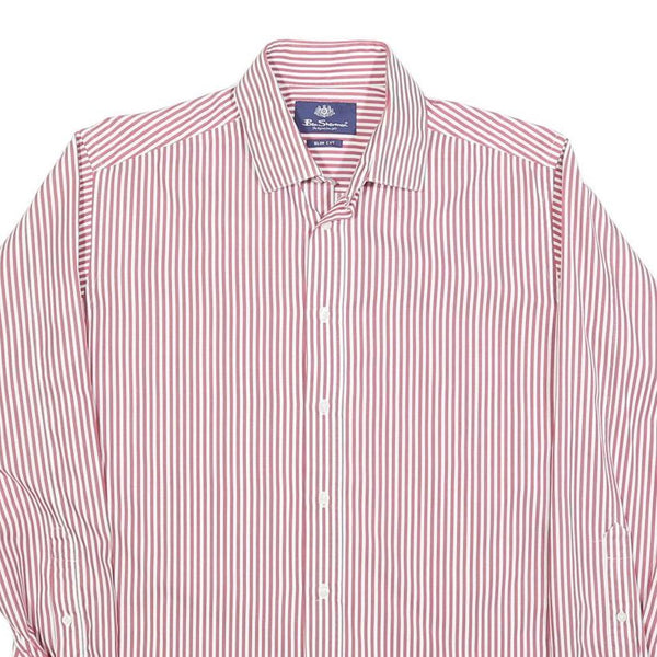 BEN SHERMAN Mens Red & White Striped Slim Fit Shirt L Formal Cotton Blend