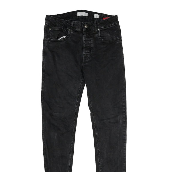 Home BENCH Mens Slim Black Jeans Denim W32 L34 Stylish Zip Closure Stretch Fit