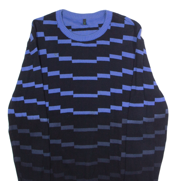 BENETTON Womens Patterned Jumper Black Striped Crew Neck Tight Knit S
