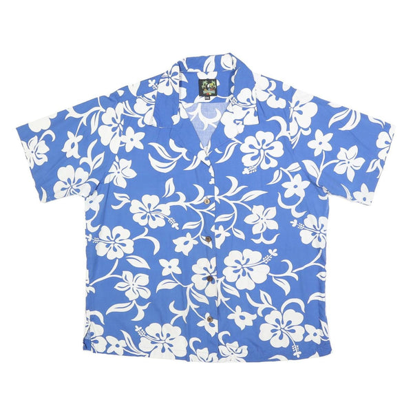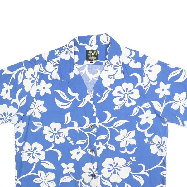 BENNY'S Mens Blue & White Floral Cotton Shirt 2XL Summer Casual Relaxed Fit