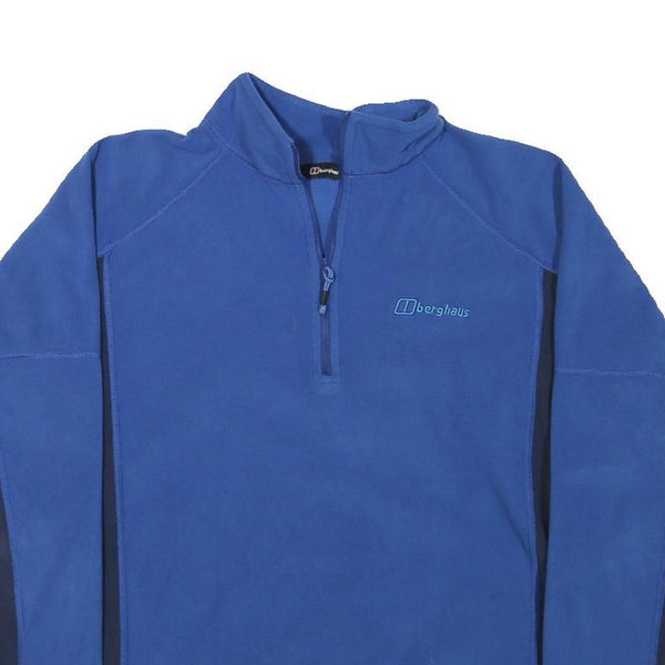 BERGHAUS Mens Blue & Navy Plain Pullover Jumper Quarter Zip Polyester Blend L