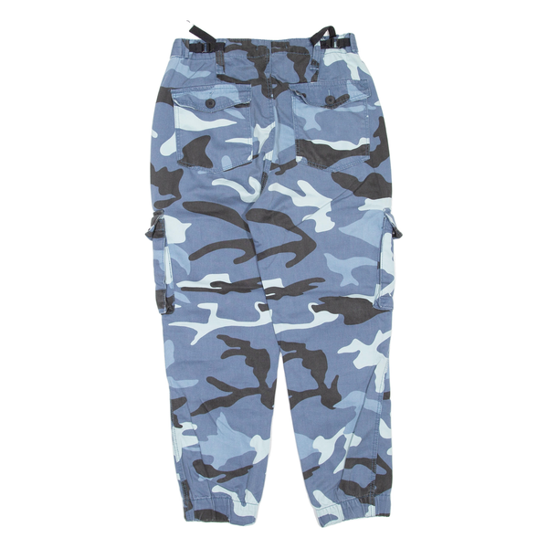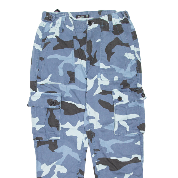 BERSHKA Camo Womens Trousers Blue Regular Tapered W28 L24