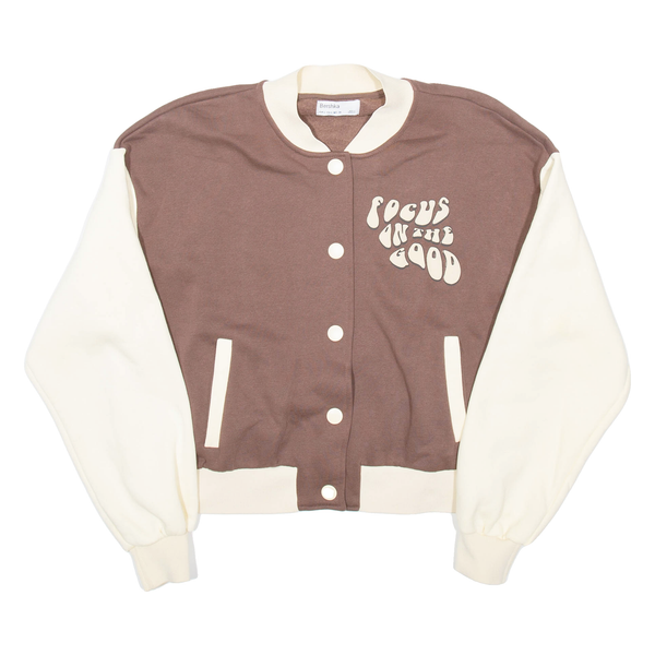 BERSHKA Focus On The Good Womens Varsity Jacket Brown L